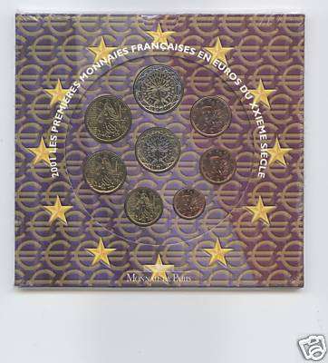 KMS FRANKREICH 2001 inkl. aller Münzen (1 Cent – 2 Euro) im original Folder!