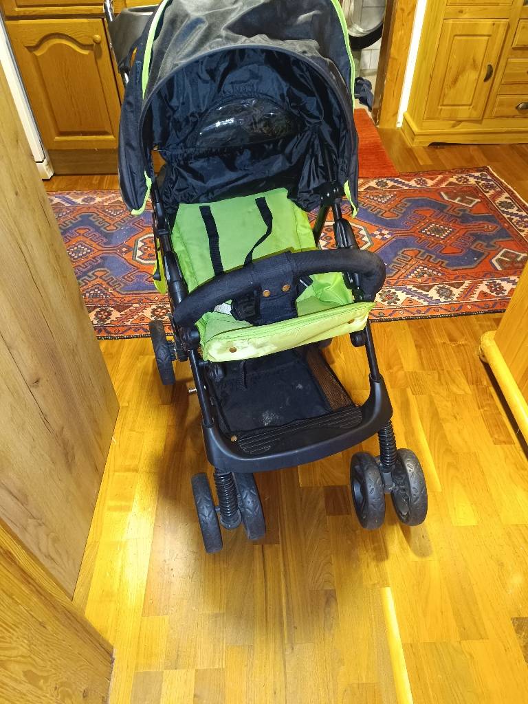 Eigenschaften: verstellbares, abnehmbares Verdeck mit Sichtfenster, vielfach verstellbare Rückenlehne und Beinablage, 5-Punkt Sicherheitsgurt mit Gurtschnalle, schwenk- und feststellbare Vorderräder, Feststellbremse und geräumiges Einkaufsnetz.