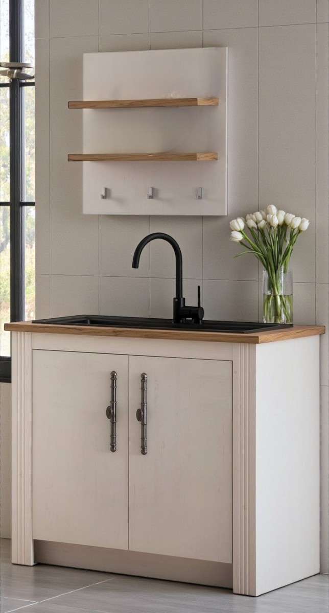 Ohne Spüle. Kann auch als Kommode genutzt werden.