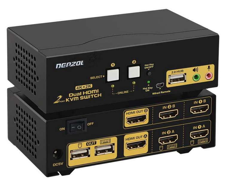 HDMI KVM Switch Dual Monitor 2-Port Extended Display 4K @ 30Hz, Auswahlbox für Tastatur-Video-Maus mit Audio, USB 2.0-Hub und Kabelsätzen 922HUA