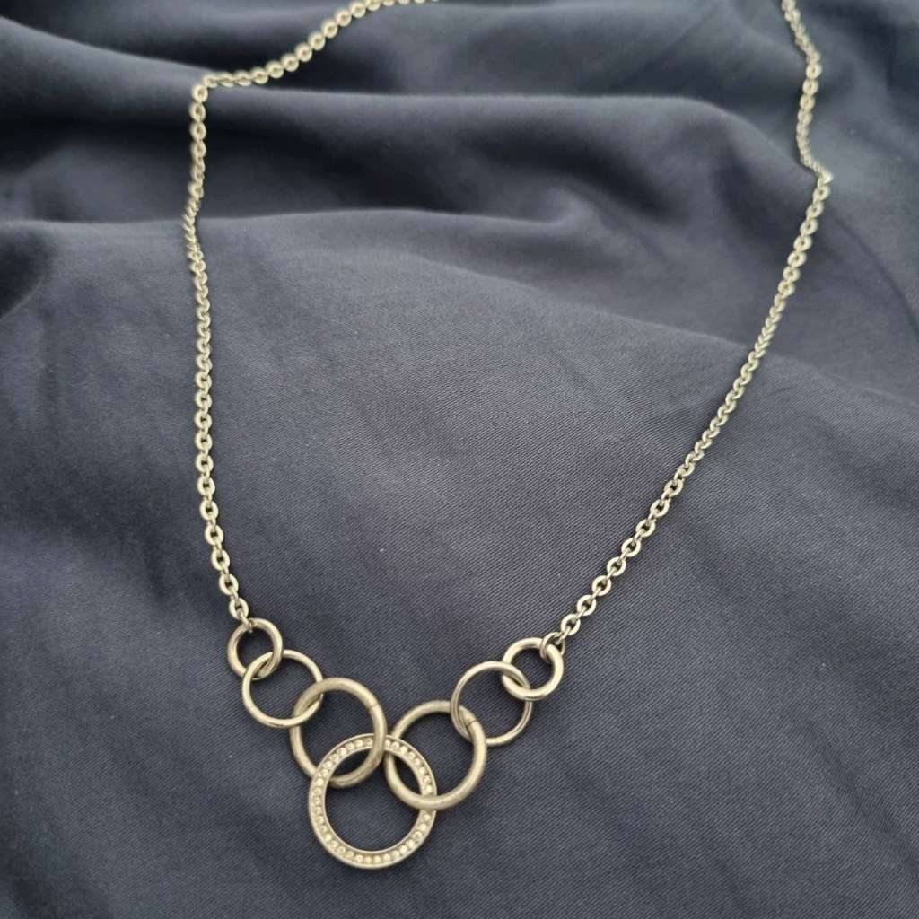 Lange Kette der Marke Fossil, silber, mit Ringen als festen Anhängern. (Kein Verrutschen vom Verschluss, praktisch)