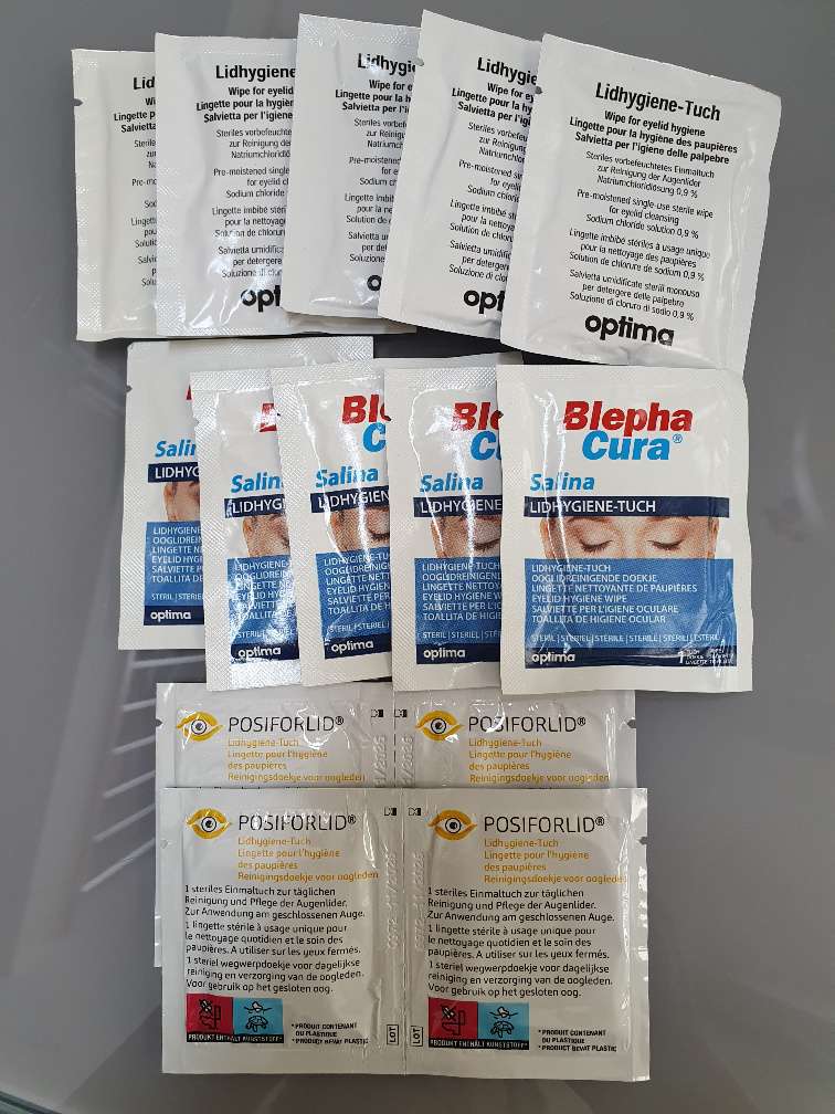 Vorbefeuchtete Einmaltücher zur Reinigung der Augenlider