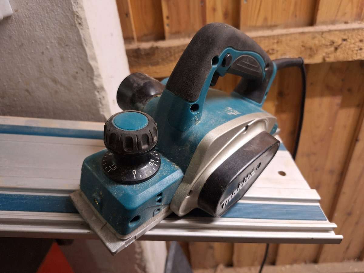 Ist leider einmal von der Leiter gefallen und daher ist die auflageplatte ganz vorne rechts verzogen. Es ist aber genug gerade Fläche vorhanden um zu hobeln.