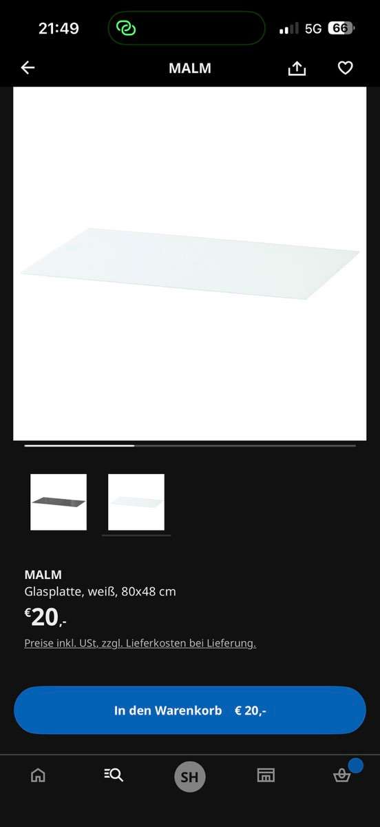 malm Glasplatte