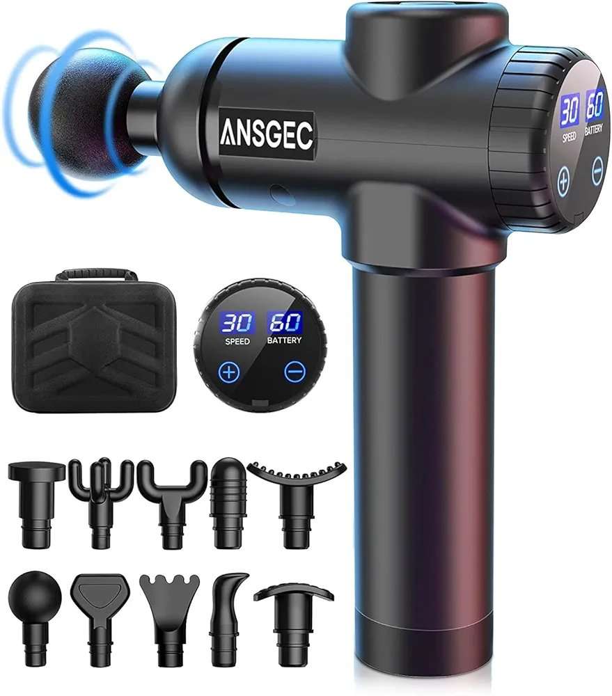 Tiefe Muskeln Massage Pistole: ANSGEC.HOME Massage Pistole wirkt tief in das Gewebe, erreicht eine Muskeltiefe von 12 mm, kann dazu beitragen, Muskelschmerzen zu beseitigen, löst schnell Verspannungen auf, reduziert Milchsäureaufbau, verbessert die Bewegungsfreiheit und Flexibilität, fördert die Durchblutung und vieles mehr. Ideal für Linderung von Nackenschmerzen, Rückenschmerzen, Schultermerzen, vor und nach Fitnessübungen.