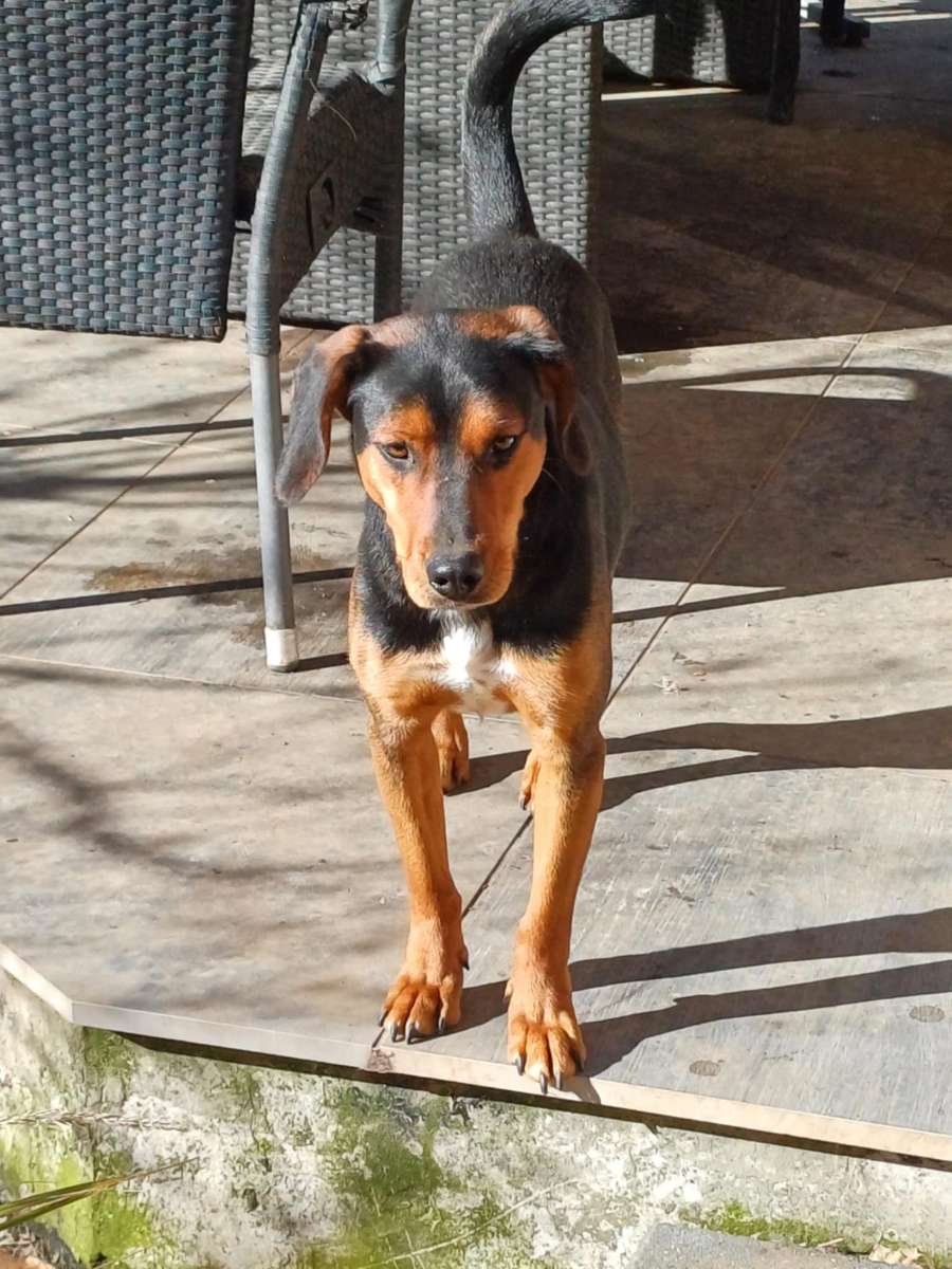 Der folgsame Bracke Merlin 2 Jahre ist anfangs bei Fremden schüchtern.
