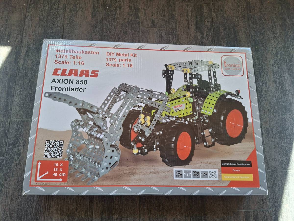 - Produkt: Tronico Metallbaukasten Claas Axion 850 mit Frontlader.