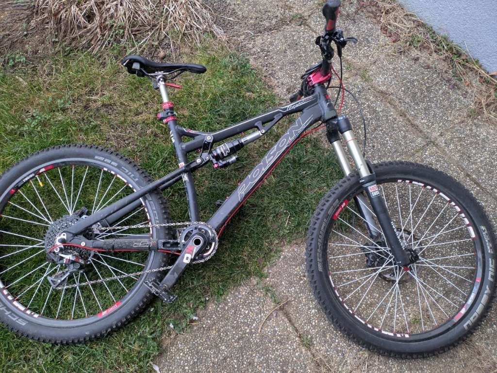 Sehr leichtes und wendiges Allmountain-Enduro Bike mit nur 13,3kg mit den dicken Nobby Nik Reifen und Pedale.