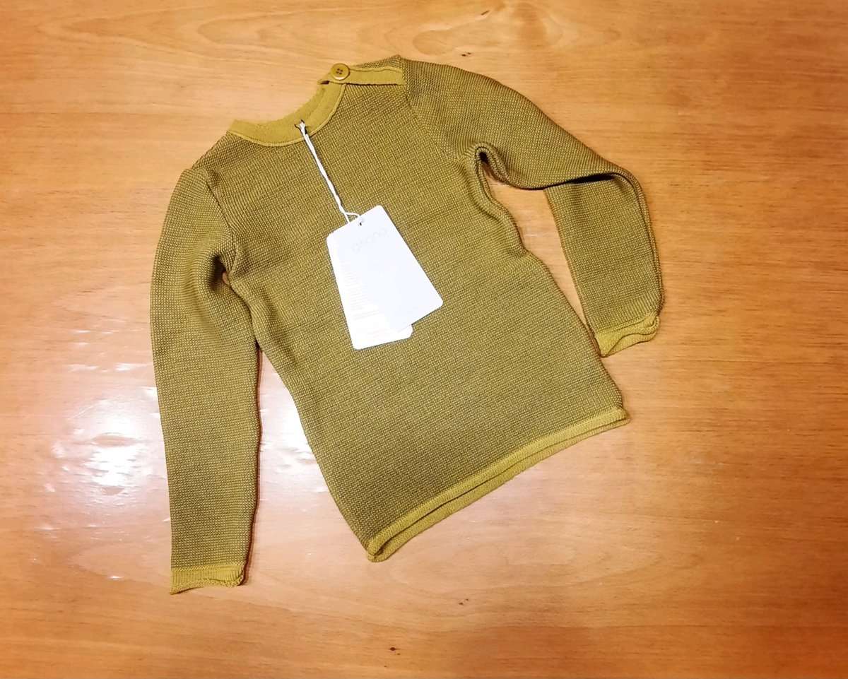 NEU! Disana Unisex Melange Pullover Strickpullover curry gold 100% Wolle Gr 98/104