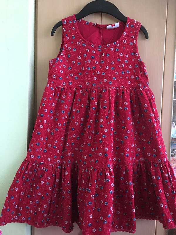 Neuwertiges Cord Kleid/ Unterrock Topolino ROT/ BLUMEN 128/100% Baumwolle/ Fixpreis K7
