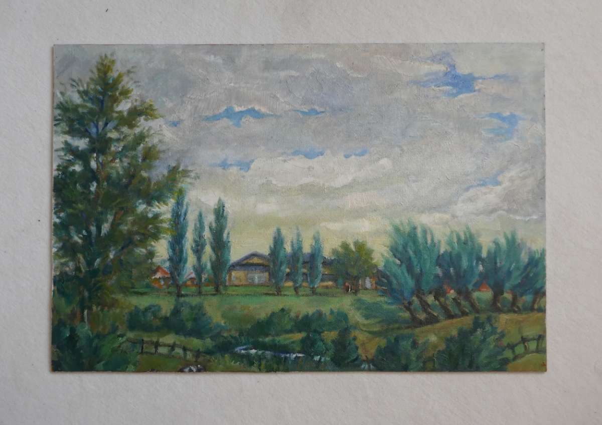 Ölbild - Bauernhaus an einer Weide