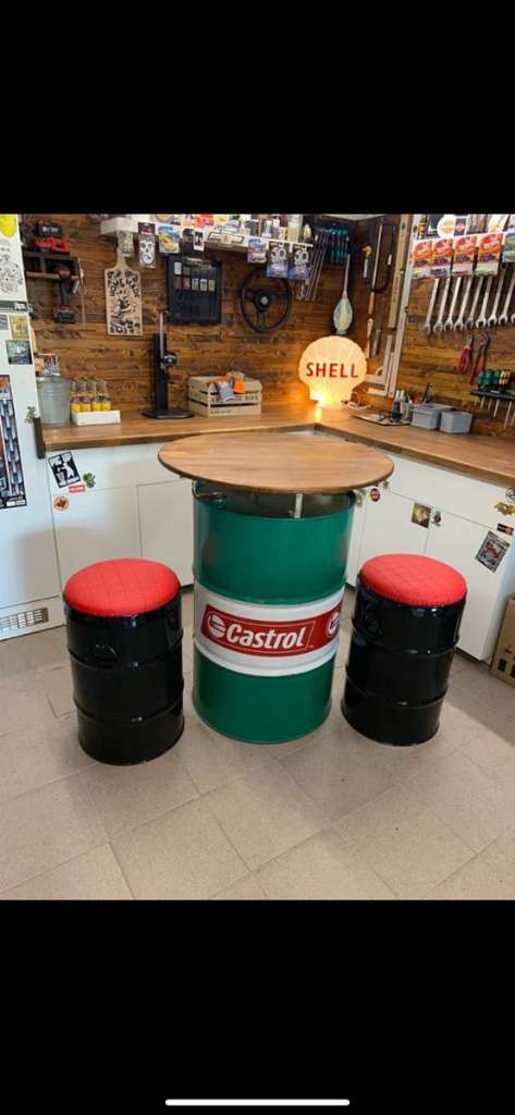 Ölfass stehtisch mit 2 Hocker