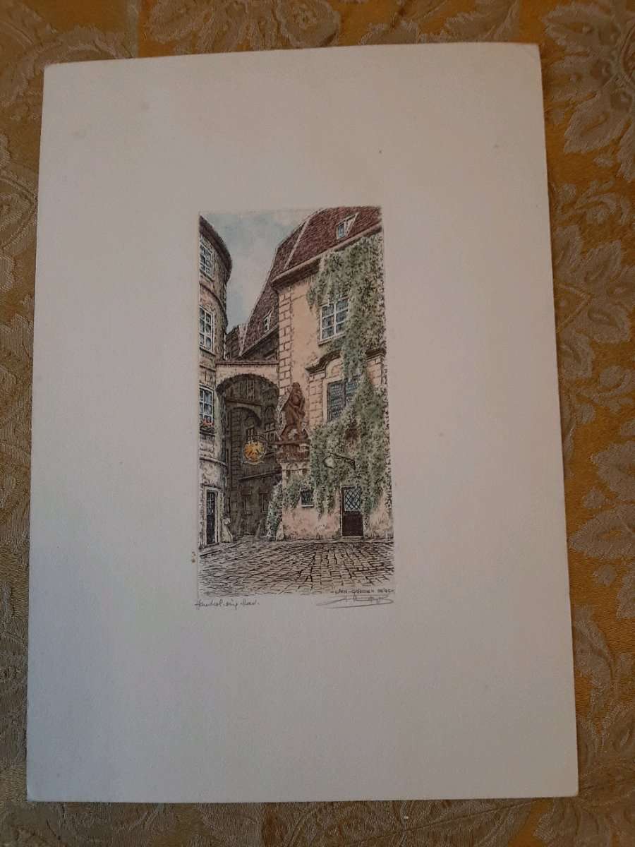 Original Radierung, handcoloriert, Griechenbeisl