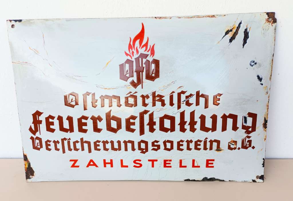 Emailschild gewölbt um 1938. Maße 40 x 60 cm. Versand 8 Euro. ( Werbung Reklame Emailschild Blechdose Zigarettendose Bier Fahrrad Versicherung )