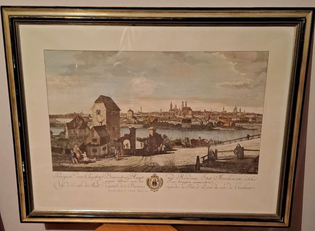 Alte Ansicht von München von der Iser Brücke sehr schönes Detail genaues Bild von München. 80 x 63 ,cm