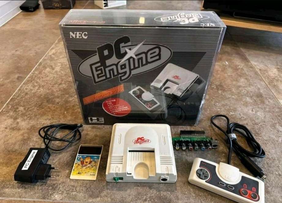 Verkaufe aus meiner Sammlung da ich langsam mein altes Zimmer Auflöse Meine Pc Engine Konsole mit Ovp,Anleitung,Spiel,Zubehör und Audio/Rgb/Componentenboard.Dieses Unterstützt zb Mega Drive 2 Rgb Kabels und wird Benötigt um zb bei einem Turbo Ed Pro Sound in Cd Spielen zu Bekommen