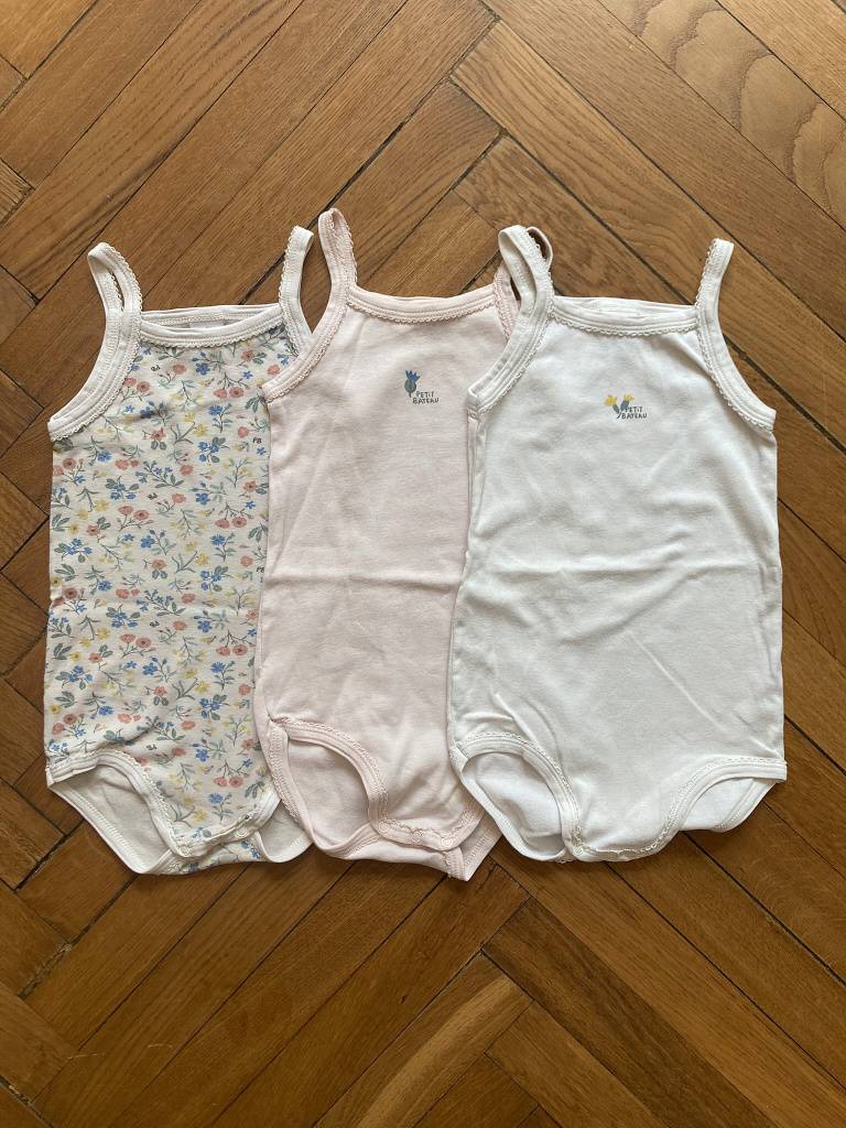 3 Bodies ohne Arme von PETIT BATEAU, 100% BW, einwandfreier Zustand, keine Flecken, keine Löcher. Wir sind ein tier- und rauchfreier Haushalt.