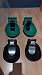 Die grünen sind aus Kunststoff die schwarzen aus Eisen.