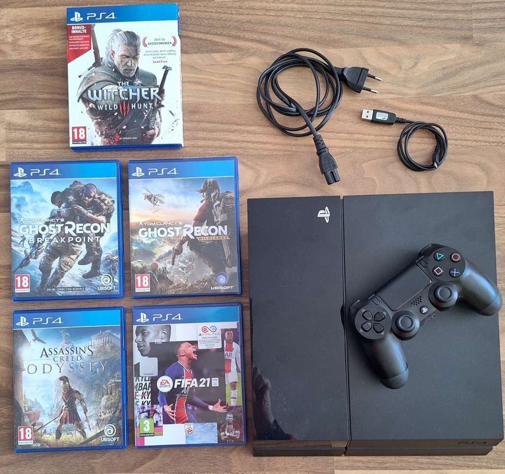 Verkaufe Playstation 4 Slim mit einem Kontroller und 5 Spielen - siehe Foto.
