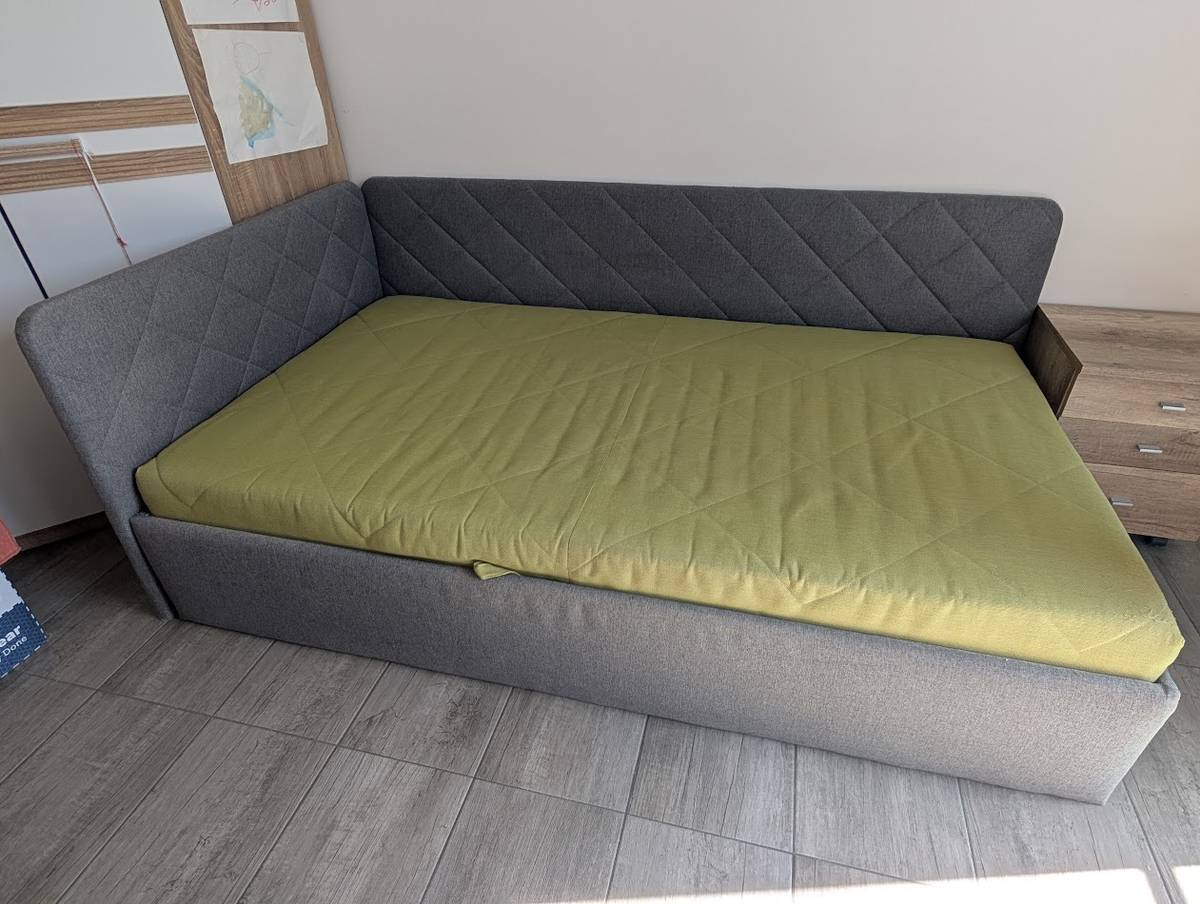 Polsterbett mit Matratze 110x200 cm Sorbona, Grau/Lime,