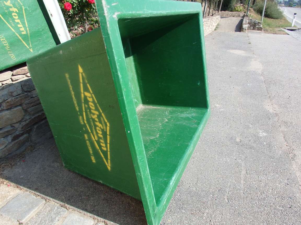 Polyform Bottich 1000 Liter, 150 X 100 X 80, wurde nur für Weintraubentransport verwendet. Einige Schürfwunden sind vorhanden ,ist aber Wasserdicht, kann auch als Hochbeet oder Wasserbehälter verwendet werden.