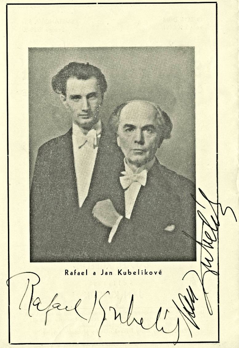 Programm des Galakonzerts der Tschechischen Philharmonie (13.12.1938) mit zwei Originalautogrammen. Rafael Kubelik - Dirigent und Jan Kubelik - Solist. Abmessungen 15x23 cm. Versandkosten zahle ich.