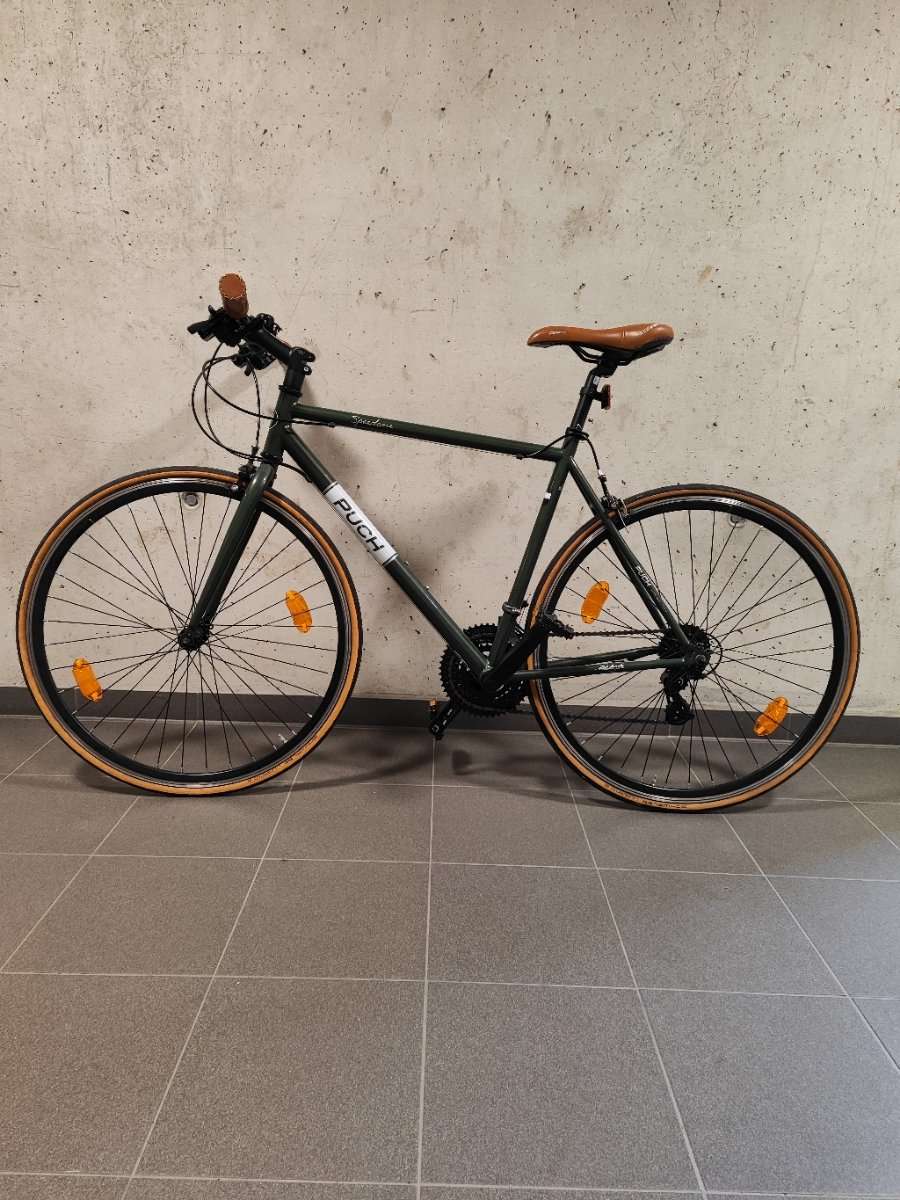 Der solide und elegante Stahlrahmen in Kombination mit einer starren Stahlgabel bildet die Basis für diesen Stadt-Flitzer mit Retro-Charme. Die Schaltung von Shimano mit 21-Gängen lässt keine Wünsche offen und damit lässt sich jeder Hügel auf dem Heimweg mit links bezwingen. Solltest du (mal wieder) zu schnell unterwegs sein, dann bieten dir die Felgenbremsen aus Aluminium die notwendige Sicherheit um auch wieder zum Stehen zu kommen.