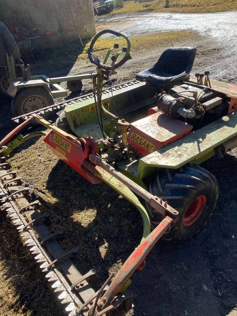 Rasant Berg- Trak. 2 Zylinder MAG-Motor! 2 m Doppelmessermähwerk + 2 zusätzliche Messersätze! Vergaser gehört gereinigt bzw. eingestellt. Bremsen, Bremsseile, Keilriemen, Luftfilter und Ölwechsel wurden letztes Jahr erneuert bzw. durchgeführt!!