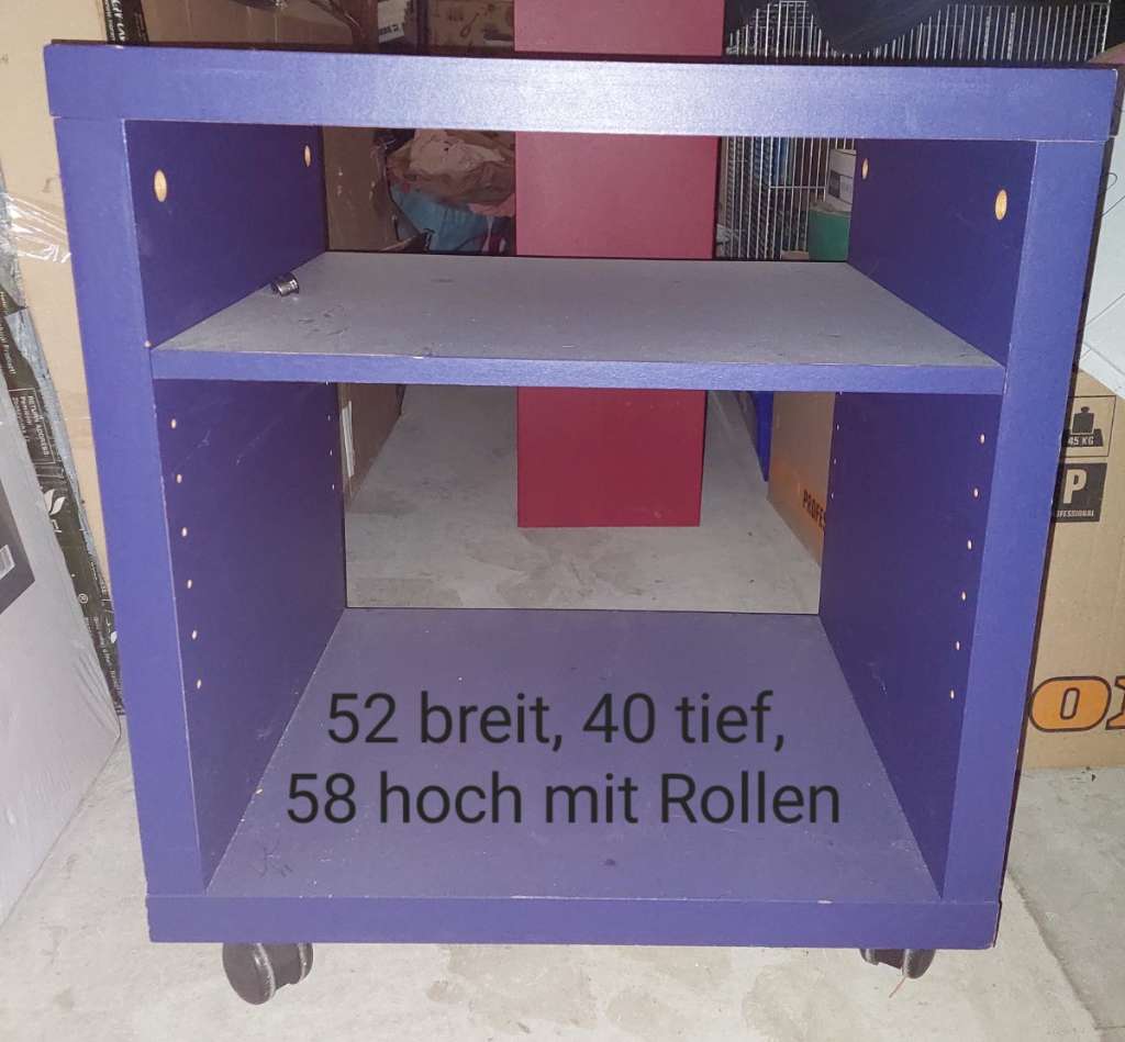 52 cm breit, 40 cm tief, 58 cm hoch mit Rollen