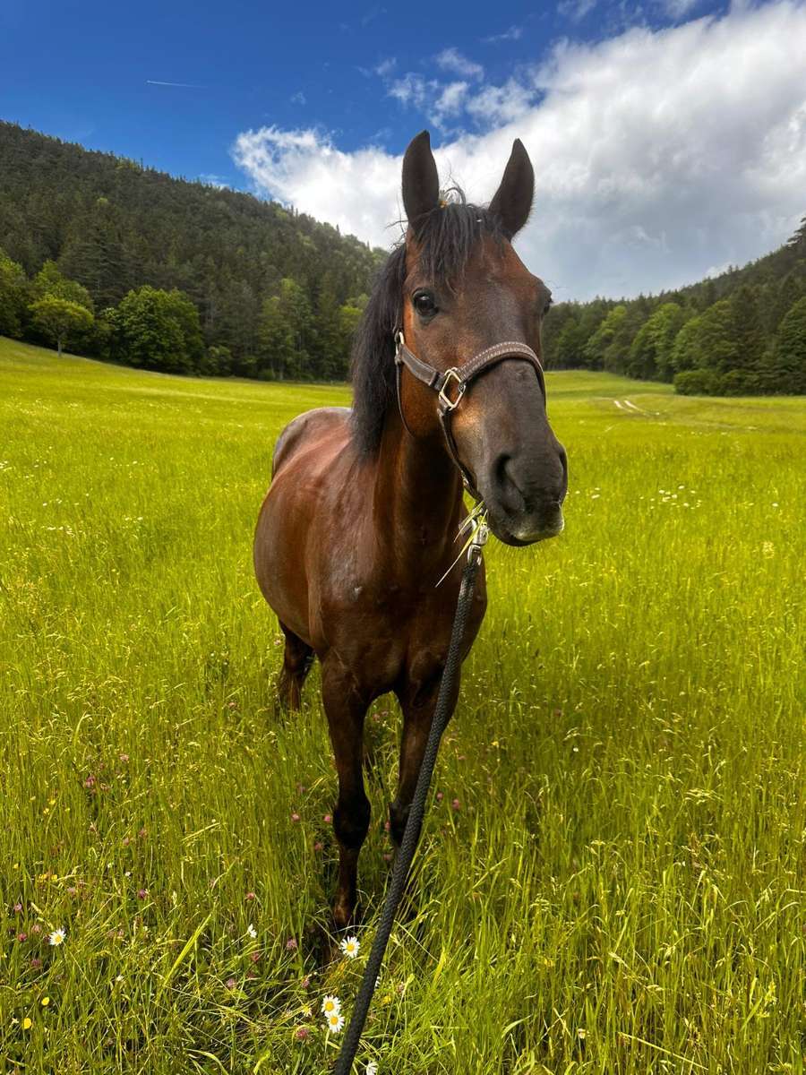 Ich suche eine liebe Reitbeteiligung für meinen Warmblut-Mix-Wallach, Winston. Er wird jetzt 12 Jahre alt und ist extrem freundlich und menschenlieb. Er hat, meiner Meinung nach, eine richtig coole Größe mit ca. 1,48 Metern Stockmaß und liebt Ausritte, wobei Hunde kein Problem für ihn sind. Ich reite ihn eigentlich immer Western aber es würde auch ein englischer Sattel zur verfügung stehen, Winnie ist da ziemlich unkompliziert. Ich bin vorzugsweise auf der Suche nach jemandem mit Erfahrung und der auch wirklich Lust hat mit Winnie zu arbeiten und ihn zu bewegen, da er bei mir zur Zeit leider immer etwas zu kurz kommt...