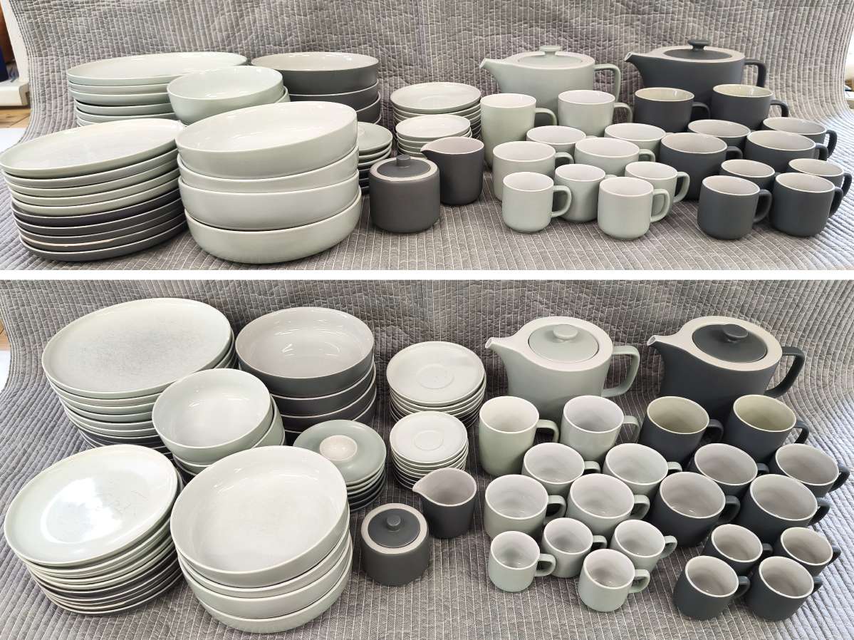 Das angebotene Geschirr der Marke "Ritzenhoff & Breker" / Serie "JASPER" ist hochwertiges Steinzeug in einem klassischen und schlichten Stil. Die zwei Farbigkeit des Sets macht jeden gedeckten Tisch zu einem Hingucker.