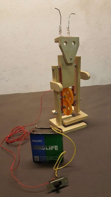 Dieser Roboter kann gehen! Nicht dabei sind die zum Betrieb nötigen 4,5 V Batterien.
