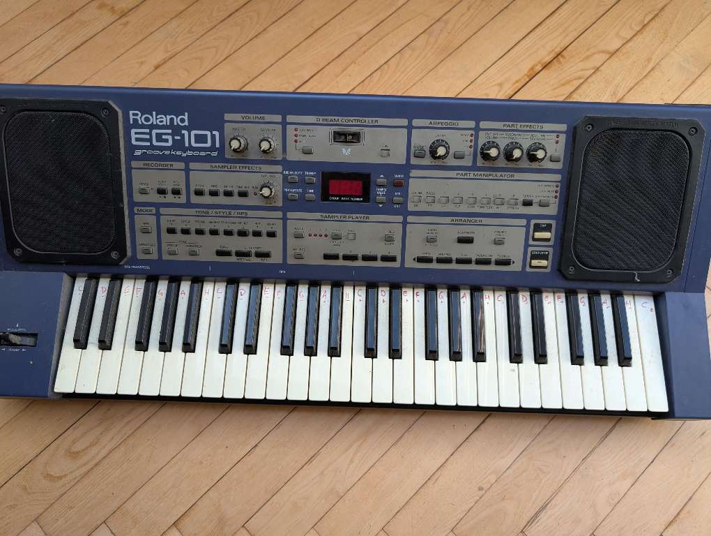 Der EG-101 ist ein Groove Arranger-Keyboard mit 49 anschlagdynamischen Tasten, D-Beam Controller und Arpeggiator. Die Klangerzeugung bietet 12 unveränderliche Drum-Kits und 448 Dance Sounds, bei denen sich lediglich Filter Cutoff und Resonanz verändern lassen, und Audio-Effekte. Der Arranger bietet 64 Styles mit je vier Variationen, alternativ können 64 * 8 RPS-Phrasen als Begleitung genutzt werden. Ein kleiner Sampler minderer Qualitaet ist auch an Bord. Die 2 x 15 Watt Verstärkung mit 2-Wege Baßreflex-System klingt erstaunlich gut. Man kann Variationen im Klangbild, aber leider nicht in der Notenfolge von Styles und RPS-Phrasen erstellen.