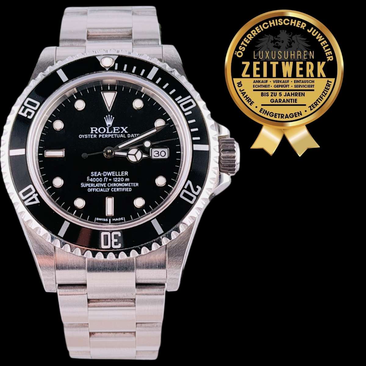 ROLEX SEA-DWELLER AUS 2006! ABSOLUT PERFEKT/NAHEZU IN NEUZUSTAND! BEGEHRTES "NO HOLE" MODELL, ALS WERTANLAGE GEKAUFT VOM VORBESITZER UND DAHER NAHEZU UNGETRAGEN! ZUSÄTZL. SACHVERSTÄNDIGEN ZERTIFIKAT UND VOLLE 3 JAHRE GARANTIE, GERNE TAUSCHEN WIR AUCH EIN
