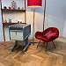 Dieser Karteikasten ist mit seiner geschwungenen organischen Form ein einzigartiges Büromöbel aus seiner Zeit. Der biomorphe Zettelkasten aus den sechziger oder siebziger Jahren wurde von der Tresorfirma Lampertz gebaut und erinnert in seinem Design an die Kurven des deutschen Designers Luigi Colani, der durch seine radikale Formensprache Weltruhm erlangte. Als Material wurde vermutlich Fieberglas verwendet, das sich damals als Werkstoff kommend aus dem Flugzeug- und Fahrzeugbau, mehr und mehr durchzusetzen begann. Der Rollkasten lässt sich auf seinen vier Rädern spielend leicht im Raum verschieben und kann mit einem verwertbaren Rollladen abgeschlossen werden. Lässt sich wunderbar umfunktionieren als Hausbar, Werkzeugkasten oder Ähnliches.