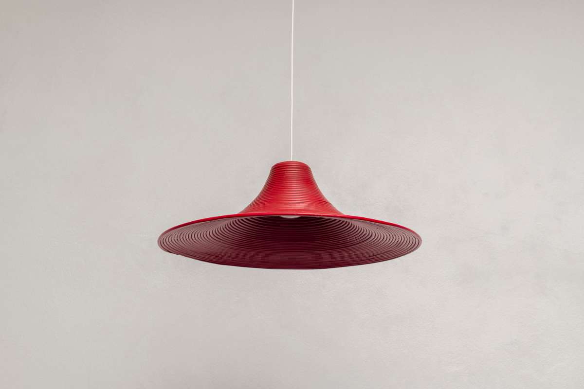 Rote Spiral Space Age Deckenlampe aus Bugholz Weide