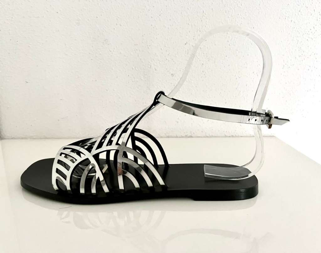 Sandale Leder Silber von Pollini, Größe 37, ungetragen