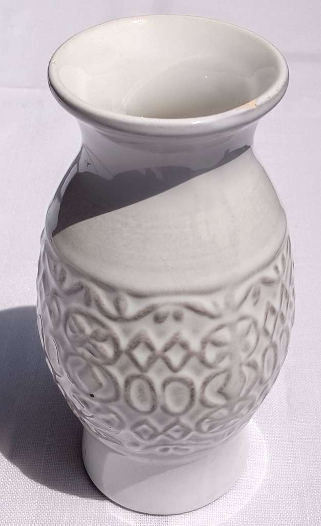 Retro-Vase der 50er / 60er mit Reliefdekor. Kleine Bestoßung am Rand. Eingeritzt am Boden: 1182 / 15.