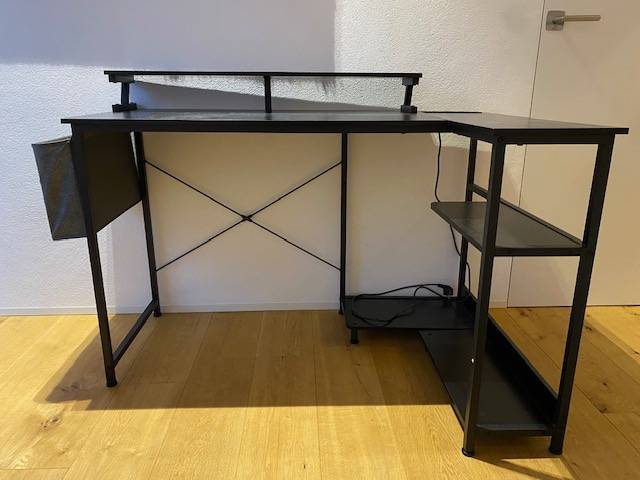 Schreibtisch schwarz mit Eckteil inkl. seitlicher Tasche
