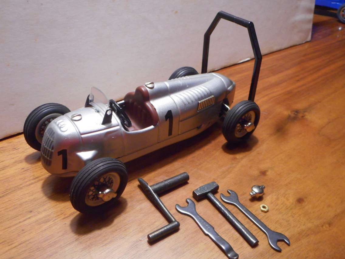 Schuco Studio Auto Union Typ C - aufziehbares Spielzeug, Rennauto in unbespieltem neuem Zustand mit Zubehör (Werkzeug) - siehe Foto. Steht seit etwa 35 Jahren ausschließlich in der Glasvitrine und wurde nie bespielt.