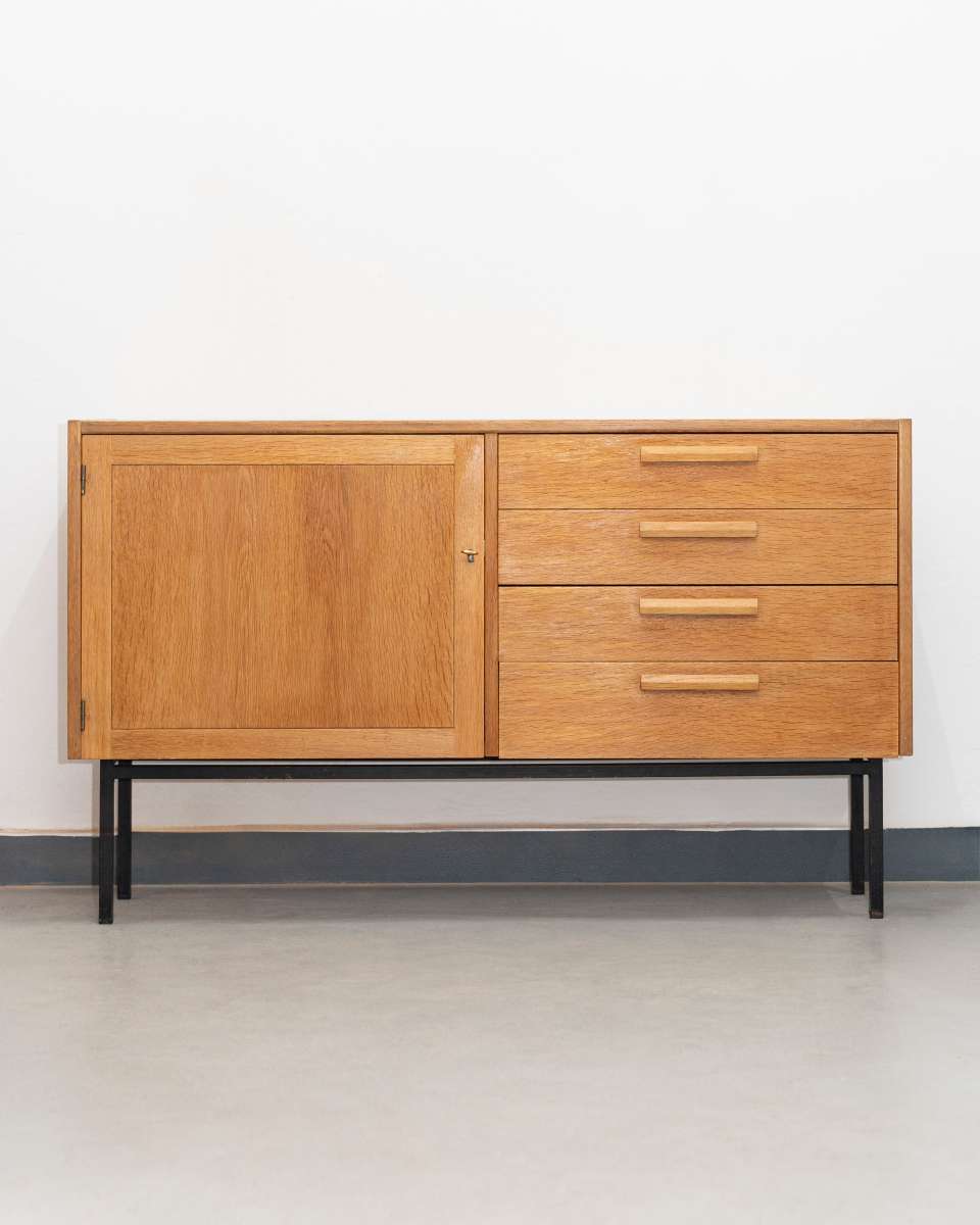 Ursprünglich war dieses kleine Sideboard von Troeds in einer Wohnwand verbaut. Mit Metallbeinen strahlt es aber auch als Einzelstück! Auf Wunsch können auch hölzerne Beine oder Hairpin Legs montiert werden.