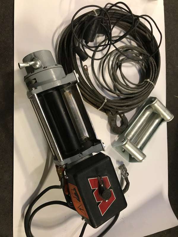 Motorgehäuse, Rollenseilfenster und Freilaufhebel neu galvanisch verzinkt, motorseitige Trägerplatte wurde geschweißt, der Rest lackiert, gereinigt und neu gefettet. 12V. Seilwinde Warn