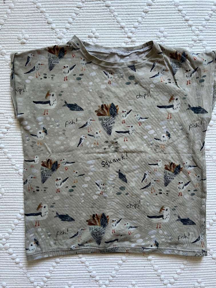 Allertollstes Sommershirt, handmade aus Bio Baumwolle und wunderschönem Print mit Möwen. Erinnert an Mini Rodini, Tinycottons, Konges Slojd, Wheat, Liewood und andere tolle Marken. Passend ab 110/116- bis ca 128.