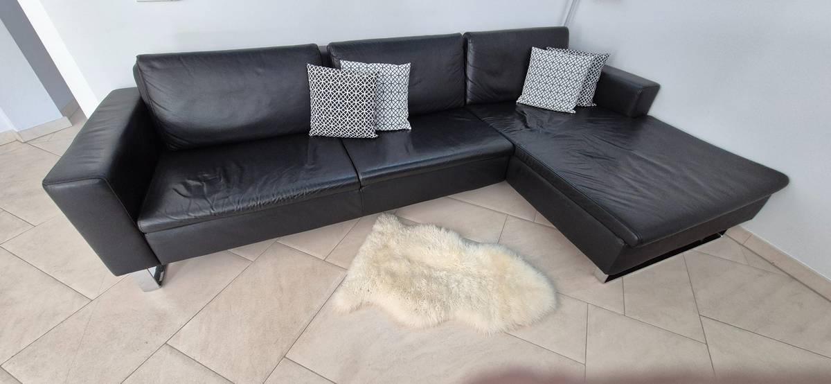 Verkaufe schöne Sitzgruppe, mit Echtlederbezug schwarz, Kufengestell verchromt.