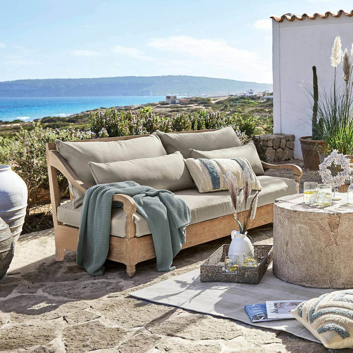 - Wetterbeständiges, wiederaufbereitetes Teakholz.