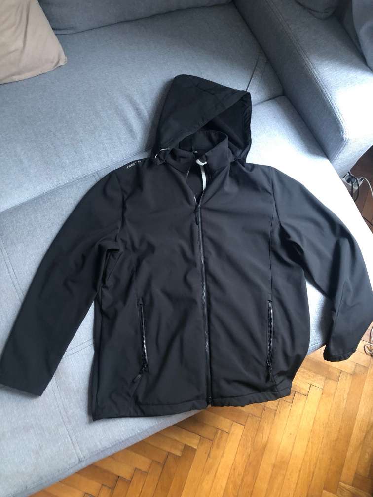 Klassische Softshelljacke der Marke First B. Auf Etikett steht 2XL, aber ich trage normalerweise XL und sie hat mir super gepasst. Abnehmbare Kapuze! Versand möglich.