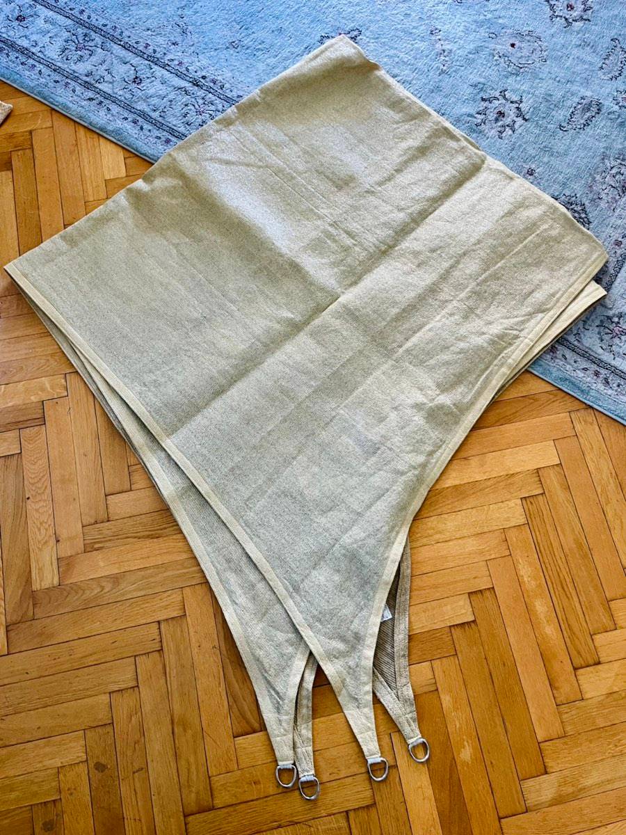 Gebraucht, guter Zustand. Wasserflecken auf der einen Seite, vermute die gehen beim nächsten Regen raus. Ich verkaufe, da die Maße leider etwas zu groß für meinen Balkon waren.