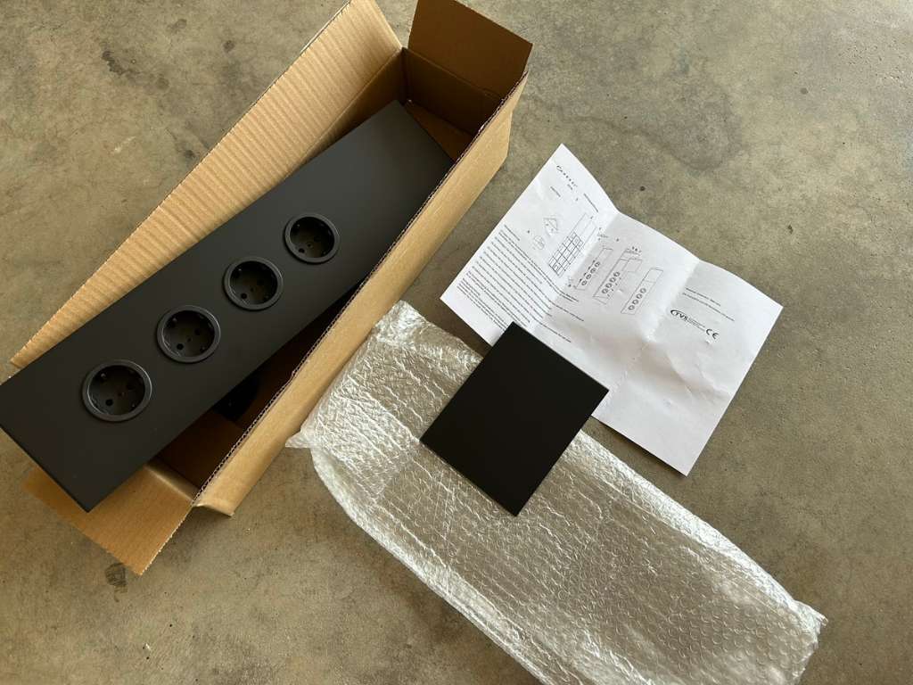 Schukostecker lose beiliegend, Ausgleichsblende mit Befestigungsplatte, Befestigungsschrauben