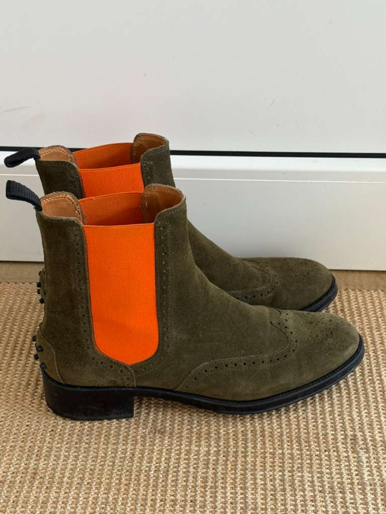 Stiefelette Leder grün orange