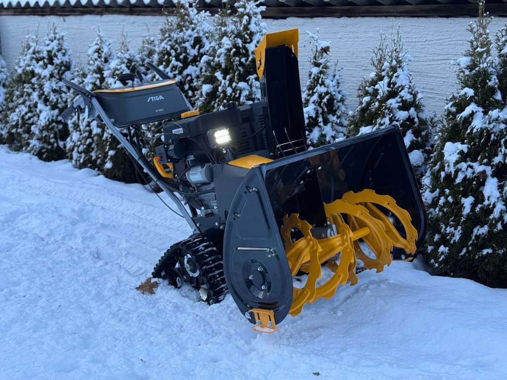 Schneefräse von Stiga mit Raupenantrieb. 76cm Räumungsbreite. Elektronische Verstellung für Auswurf und Deflektor. Handgriffheizung. 16m Wurfleistung